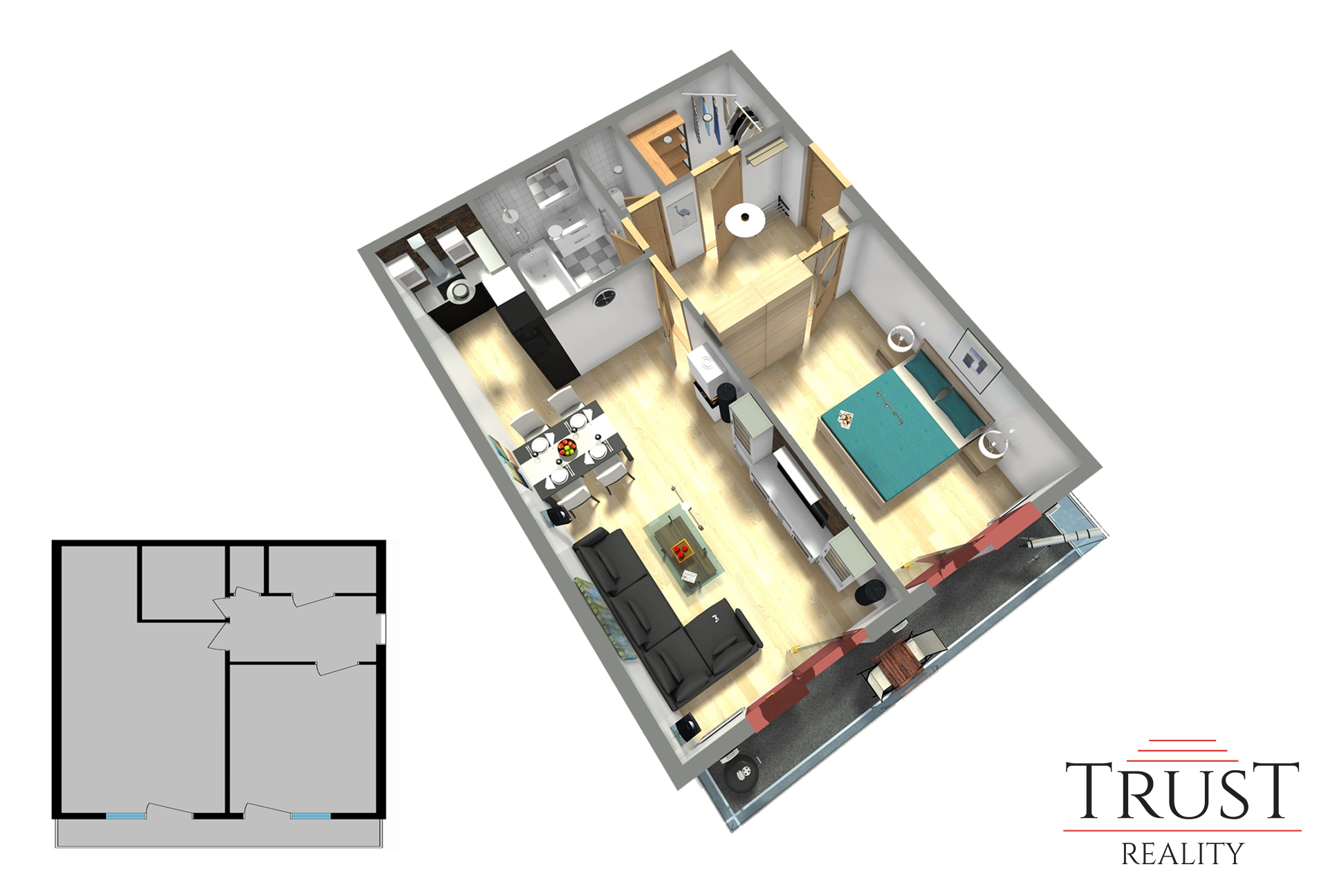 Stav:  Velmi dobrý                                                        Podlahová plocha: 63 m2